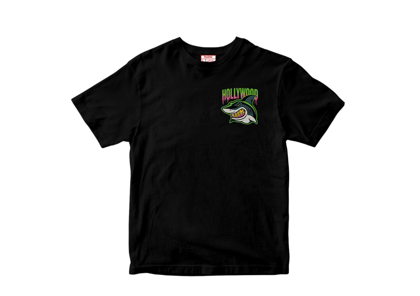 Vibrant front hit with a ruthless shark graphic and a bold Hollywood statement on the back. Street energy, sharp colors, and a message that speaks for itself.