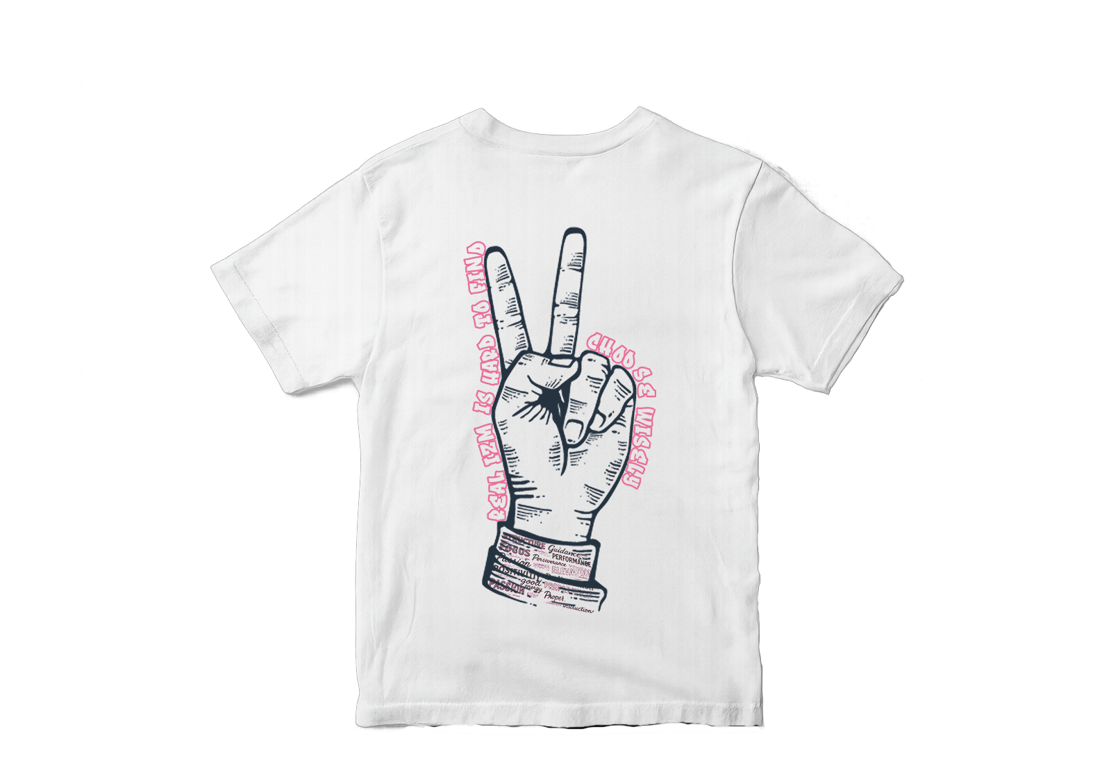 Crisp line-art peace sign with a motivational message wrapped around the graphic. Minimal front hit, standout back print — clean look with real meaning.