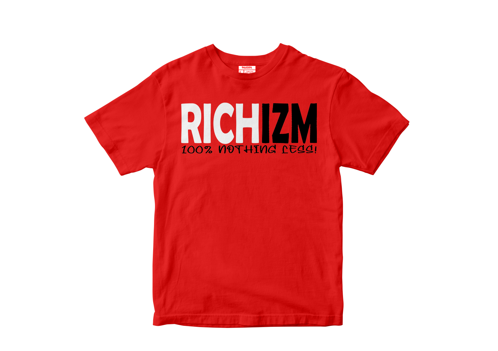 Bold RICHIZM across the chest with the tagline “100% Nothing Less” makes it clear you don’t move halfway — it’s all or nothing.